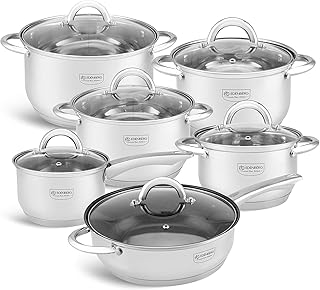 Backen 199906 Pfannen und Töpfe, 6-teilig, Edelstahl, für alle Herde, auch Induktionsherde, rostfrei, 28,5 x 28,5 x 13 cm