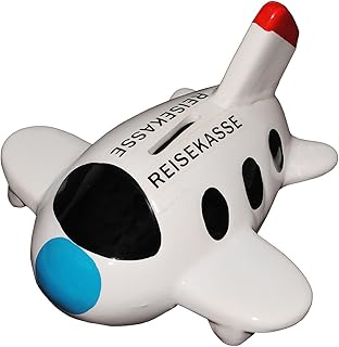 alles-meine.de GmbH XL Spardose - Flugzeug Reisekasse - z.B. für Hochzeitsreise - stabile Sparbüchse aus Porzellan / Keramik - Sparschwein - lustig witzig - Urlaubsflieger / ..