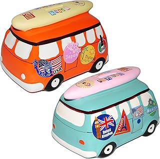 alles-meine.de GmbH 1 Stück _ Spardose - Reisekasse - Auto / Bus - mit Surfbrett - stabile Sparbüchse aus Keramik / Porzellan - Sparschwein - für Kinder & Erwachsene / lustig..