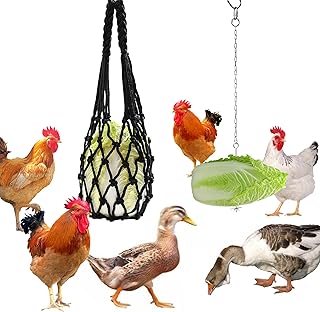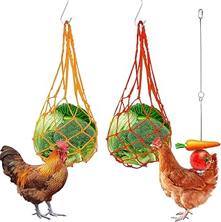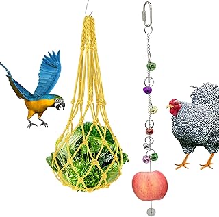 Geoyien Hühner Gemüsehalter, Hühner Heunetz Obsthalter für Vögel Hängender Feeder Spielzeug mit Glocke Treat Spieß für Hühner Gänse Enten Kaninchen , (2 Stück)