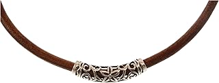 Echt Leder-Halskette Charm R Braun/SI Herren Männer