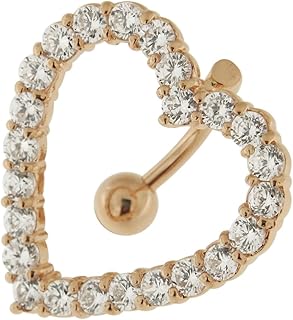 3 Micron 18K Rose vergoldet Nieten klare CZ Stein Herz um Nabel Sterling Silberbarren Bauch Piercing