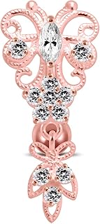 3 Micron 18K Rose vergoldet klare CZ Stein Schmetterling mit Blume Reverse Bar Design Sterling Silberbarren Bauch Piercing