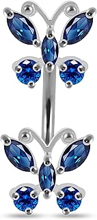 CZ Stein Twin Butterfly 925 Sterling Silber Doppelstrich Seite Bauch Piercing