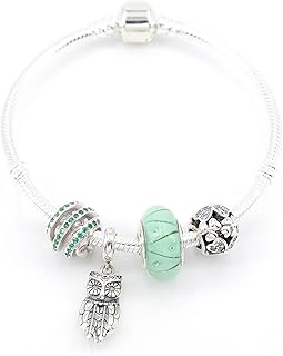 925 Silber Damen Armband mit Charms 'Grüne Waldeule', passt zu Pandora