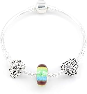 925 Silber Damen Armband mit Charms 'Psychedelic Skull', passt zu Pandora