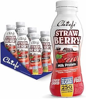 Chiefs Milk Protein Drink mit 25g Protein und BCAA • High Protein Shake low carb, laktosefrei, zuckerarm • 6 x 330ml Strawberry