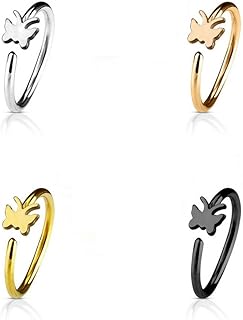 PREMIUM Nasenstecker | Nasenpiercing | Nasenring | Ohrpiercing | Fake Hoop Ring | 4er SET mit Motiv | Kann als FAKE PIERCING verwendet werden | 8.0 mm x 0.8 mm | Gold | Rosé | Schwarz | Silber |