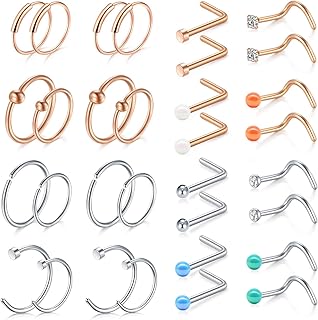 18-32Stk Nasenstecker Chirurgenstahl Nasenpiercing Set 20 Gauge L Förmig Nasenstecker Nase Spirale Stecker Piercing Schmuck mit Acryl Kugeln