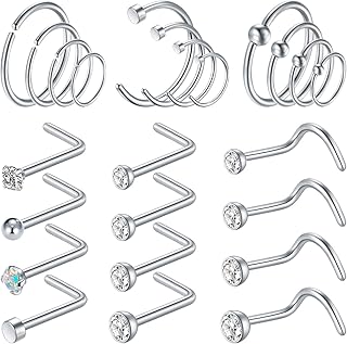 27stk Nasenpiercing Nasenring Nasenstecker Nase Spirale Ring Hoop Set Chirurgenstahl 20G Piercing Schmuck