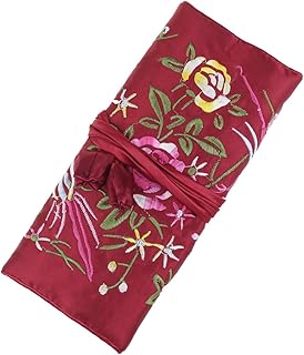 Jewelry Rolle, Reisen Schmuck Rolle Beutel, Seide Stickerei Brokat Jewelry Organizer Fall mit Krawatte Schließen weinrot