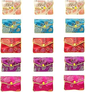 Seidenstickbeutel 15pcs Schmuckrollen-Aufbewahrungstaschen aus Seide Seidenstickerei Schmucktasche Brokat Reißverschlusstasche Chinesische traditionelle Geldbörse Münzen Aufbewahrung Gebetsperlen