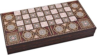 Elessar Neu 50 x 50 cm Holz Backgammon Tavla/Schachspiel/DAMA,Tavla ,Original Intarsien Kunsthandwerk Handmade,Brett BK 50 mit 30 Holz Backgammon Steine und inkl. 97 mm Holz Schach Figuren