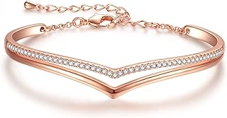 Minimalistische Armbänder für Frauen 18K Weiß/Rose vergoldet Charm Armband mit 5A kubischen Zirkonia Schmuck Valentinstag Geburtstag Geschenk für Frauen Freundin Frau Mädchen ihr
