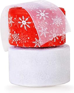 2 Rollen x 23 Meter Schneeflocken Geschenkband Weihnachten Breit Weihnachtsbänder Ripsband Dekoband Schleifenband Satinband Weihnachten für DIY Basteln Handwerk Rot Weiß