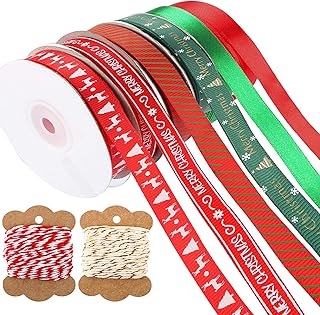 UFLF 8 Rolle Geschenkband Weihnachten Schleifenband Weihnachtsband Rot Grün Dekoband Stoffband für Weihnachten Hochzeit Geburtstag Party Geschenkverpackung DIY Handwerk Basteln Bänder