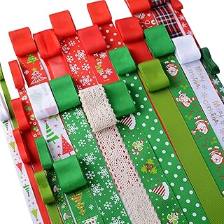 AONER 26 STK / 26 Meter Weihnachtsbänder Ripsband Dekoband Schleifenband Satinband Satin Geschenkband für Weihnachten Hochzeit Verzieren DIY Handwerk Weihnachtsband