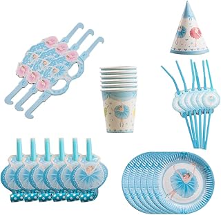Gebutstag Party Set, 42 Stücke Geburtstag Geschirr Kit Teller Tassen Servietten Tischdecke Partygeschirr für Kindergeburtstag, Party Deko, Baby Shower
