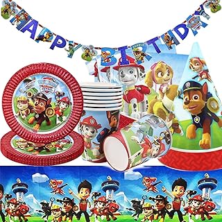 Yisscen Partygeschirr Set, Dog Patrol Kindergeburtstag Deko, Geburtstag Dekoration Kit, Party Supplies Set, Teller Tassen Servietten Besteck Banner für Kinder Tischdekoration Baby Shower