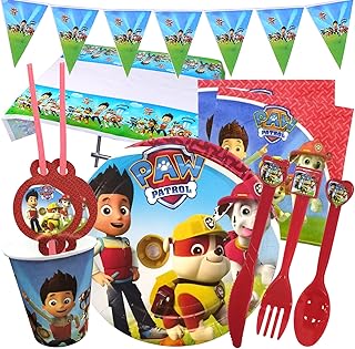 Yisscen Partygeschirr Set, Kindergeburtstag Deko, Dog Patrol Geburtstag Deko, Teller Becher Servietten Tischdecke Trinkhalme Messer Gabeln Löffel Wimpel, für Party und Kindergeburtstag (82 Stück)