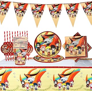 Gxhong Karikat Partyzubehör Set, Party-Set, Kindergeburtstag Party Dekoration, Geburtstag Deko, Party Zubehör Set, Partygeschirr Set Teller Becher Servietten Tischdecke Trinkhalme Banner (52 Stück)