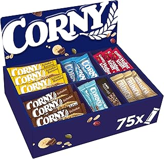 Corny Bestseller-Box, Thekendisplay mit Corny Big Schoko, Big Schoko-Banane, Milch Classic, nussvoll Erdnuss und Vollmilch, Haferkraft Cranberry-Kürbiskern, Crunch, free Schoko, 75 Riegel