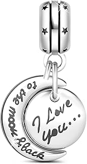 Stern und Mond Charm Anhänger S925 Sterling Silber Ich Liebe Dich zum Mond & zurück Charm Perlen für Armband Halskette Schmuck Geschenk für Damen Ehefrau Tochter