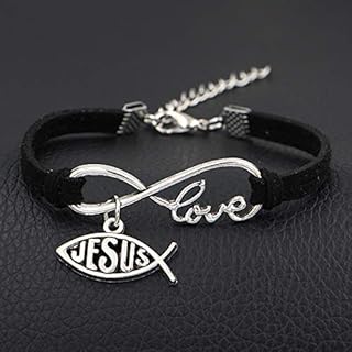 Damen Armband Armbänder Armband, Mode Persönliche Elegante Jesus & Gott Liebe Die Fisch Charms Antike Silber Herz Anhänger Unendlichkeit Liebe Leder Armbänder Frauen Geschenk