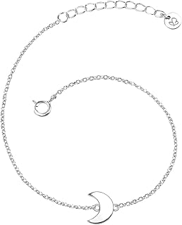 Damen-Armband Mond Sterling Silber 17 + 3 cm - Armkettchen Mond Silberarmkettchen mit Anhänger Halbmond Mondarmband Freundschaftsarmbänder